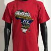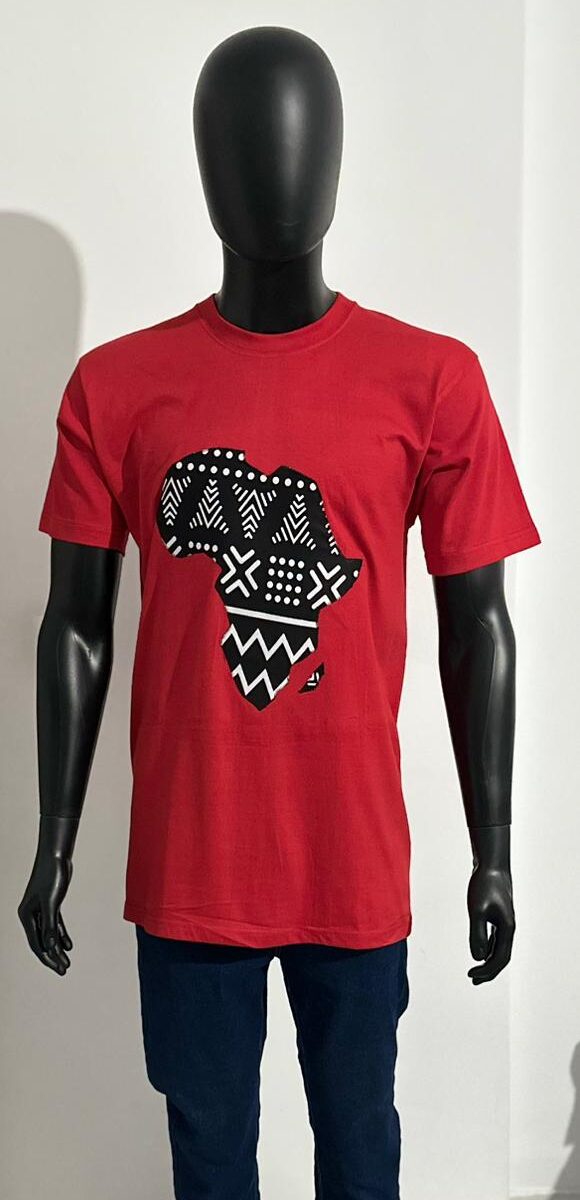 Striking contrast, bold identity — this red tee brings Africa front and center in black and white.