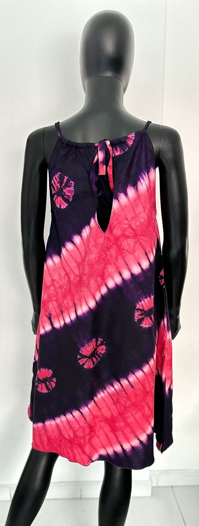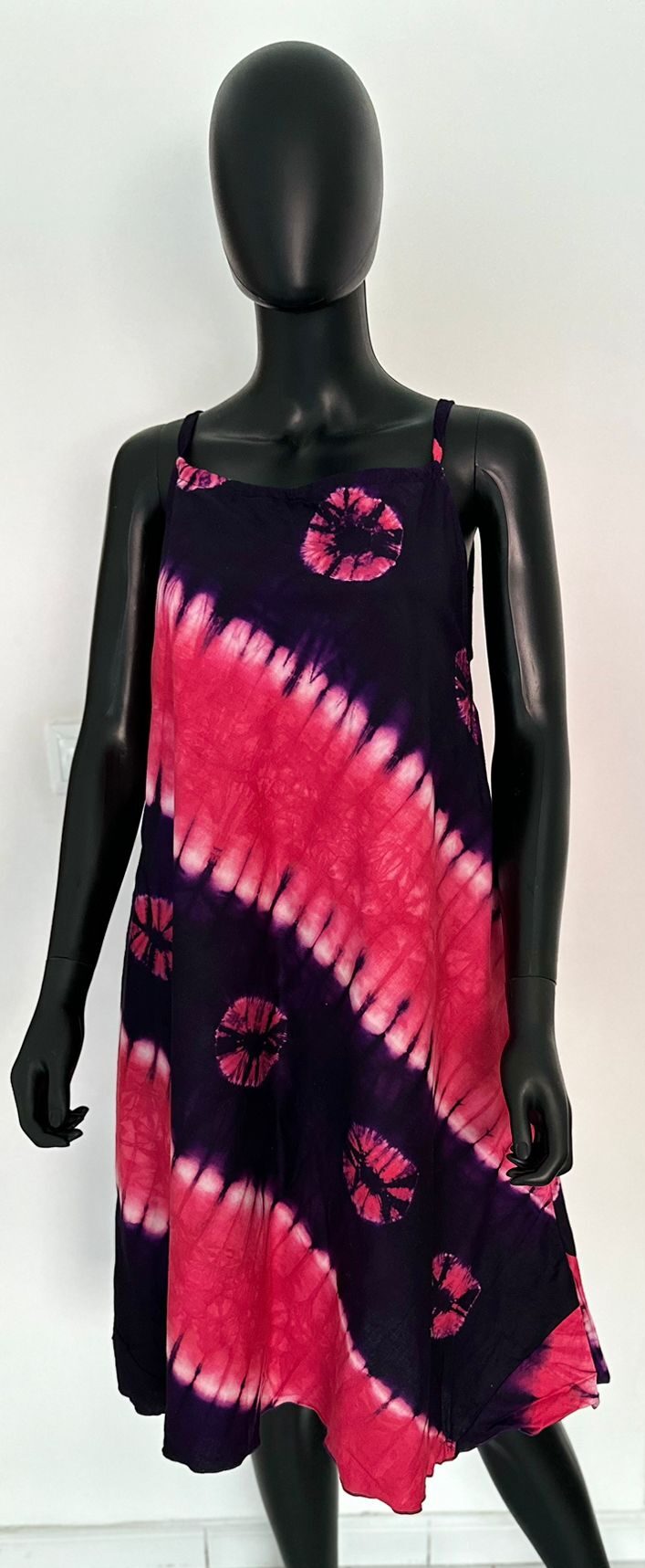 Flowy, lightweight, and vibrant — this sleeveless tie-dye dress features a bold mix of pink and purple shades. Perfect for warm days, beachwear, or relaxed weekend vibes