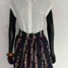 Make a statement with this striking red midi skirt adorned with an intricate green and brown floral design. Crafted from lightweight, breathable fabric, it offers comfort without compromising on style. The skirt features a tailored fit that hugs your waist and hips, complemented by a tasteful front slit that adds movement and a touch of allure. Ideal for pairing with a crisp white blouse or your favorite top, this versatile piece effortlessly transitions from day to night, making it a must-have addition to your wardrobe.