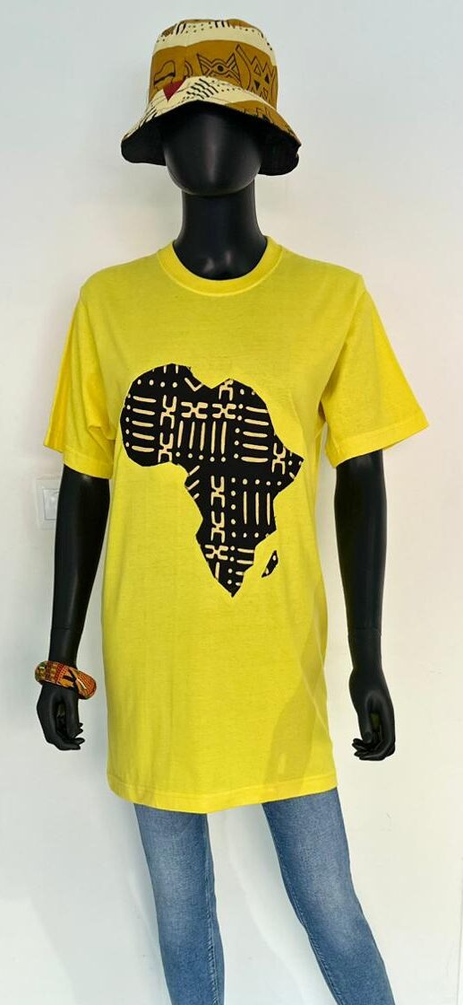 Light up your look with this vibrant yellow t-shirt, featuring the African continent boldly stamped in rich, earthy print. The design is a celebration of identity and pride, perfect for everyday wear with jeans or dressing up with accessories. It’s soft, breathable, and made to move with you — effortlessly stylish while honoring heritage. This piece speaks without saying a word