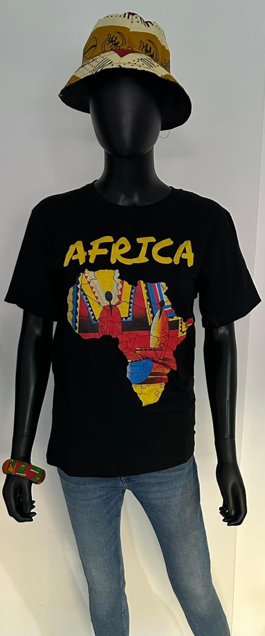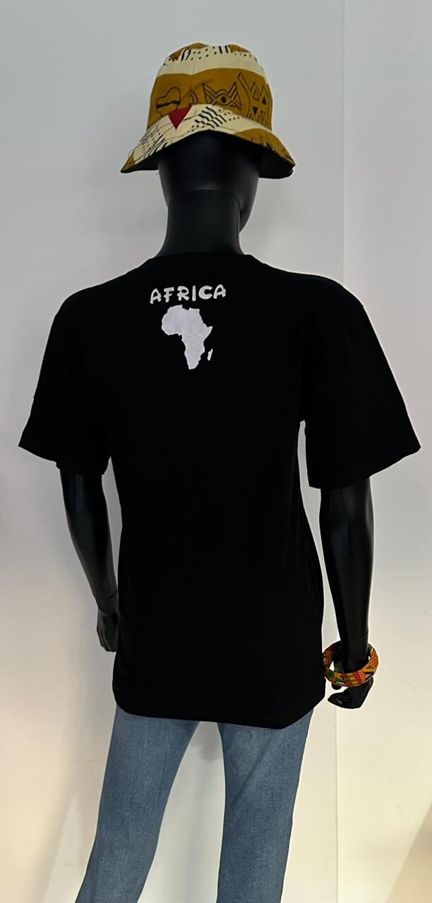 Wear your roots with pride in this eye-catching “AFRICA” graphic T-shirt. Made from soft, breathable cotton, this tee features a striking map of Africa filled with vivid traditional patterns and silhouettes, framed by bold yellow lettering. It’s the perfect blend of culture and comfort—great for casual days, cultural events, or as a statement piece. Pair it with jeans or layer it under a jacket for an effortlessly cool look that speaks volumes.